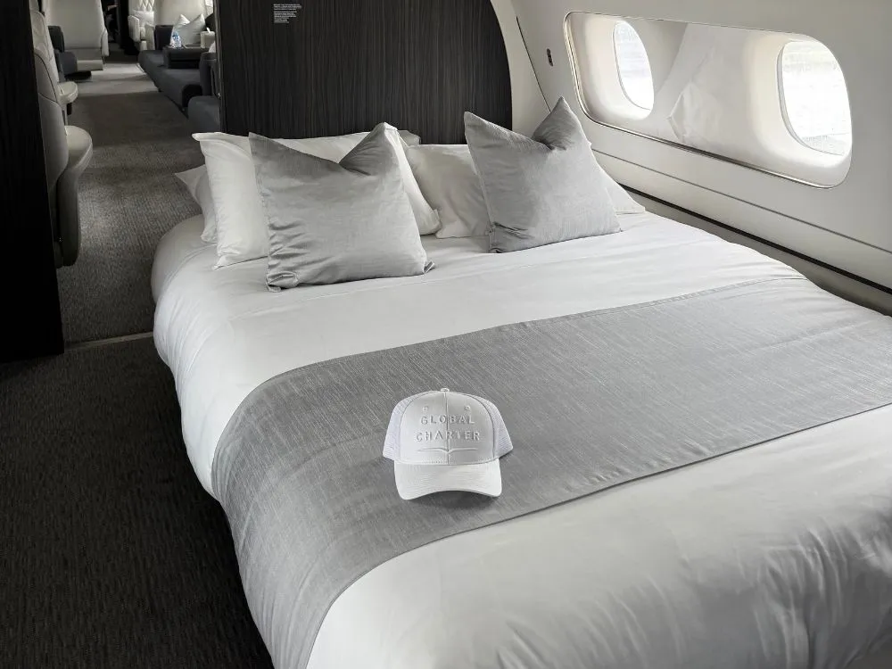 - Gulfstream G800: can be configured with a purpose-built stateroom that includes a full-size bed. While many layouts include this bedroom, availability depends on the specific aircraft configuration, so it’s important to confirm with your broker before booking.